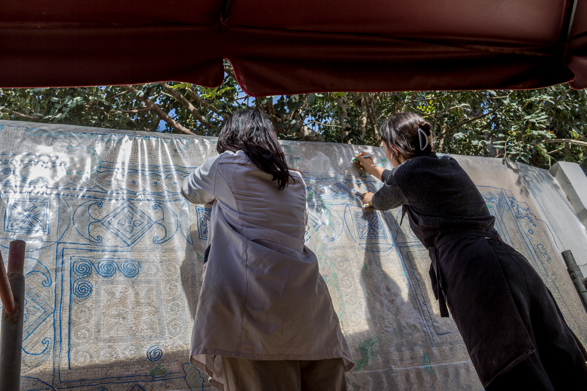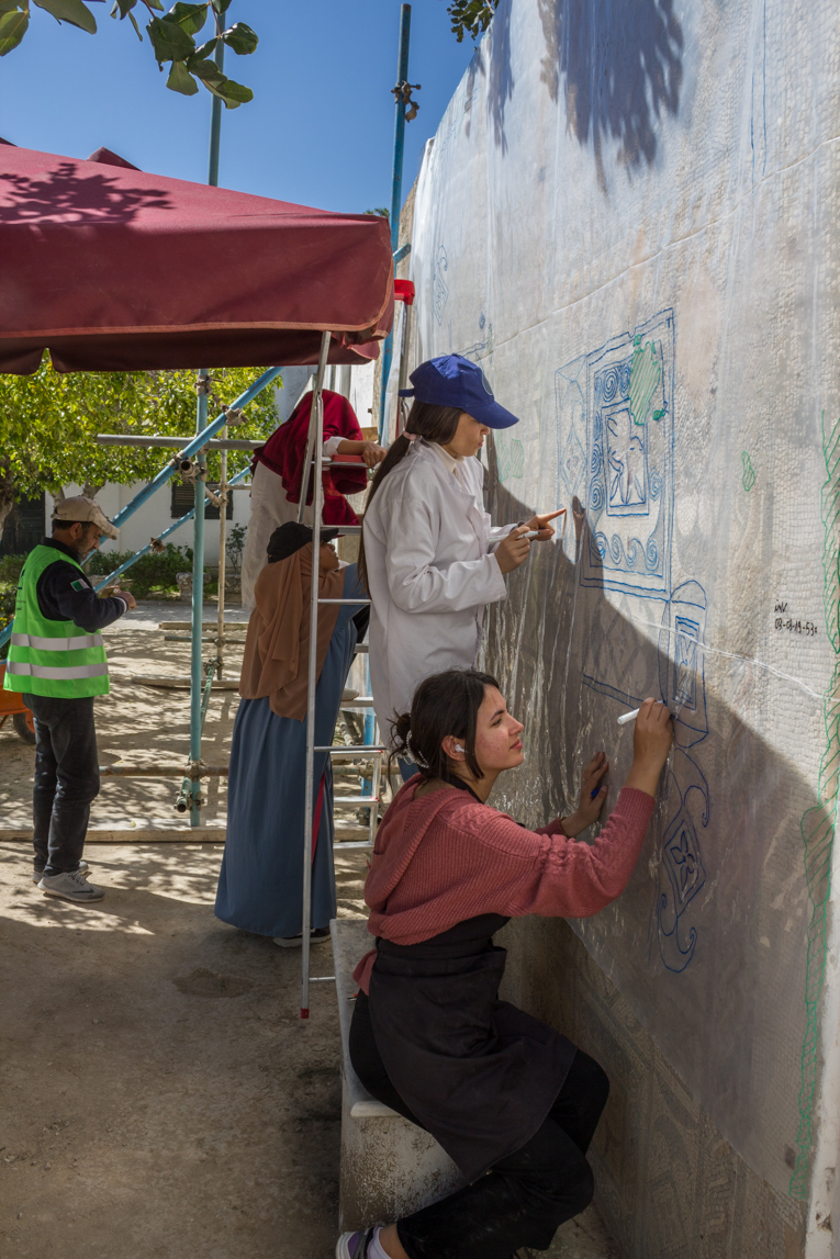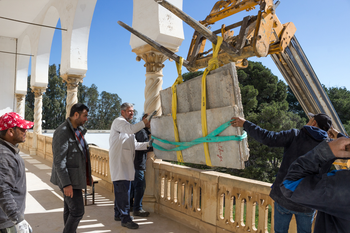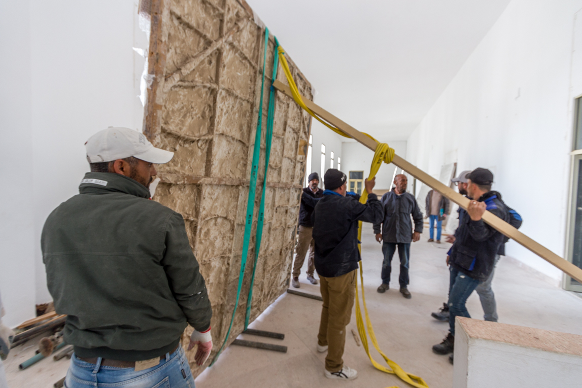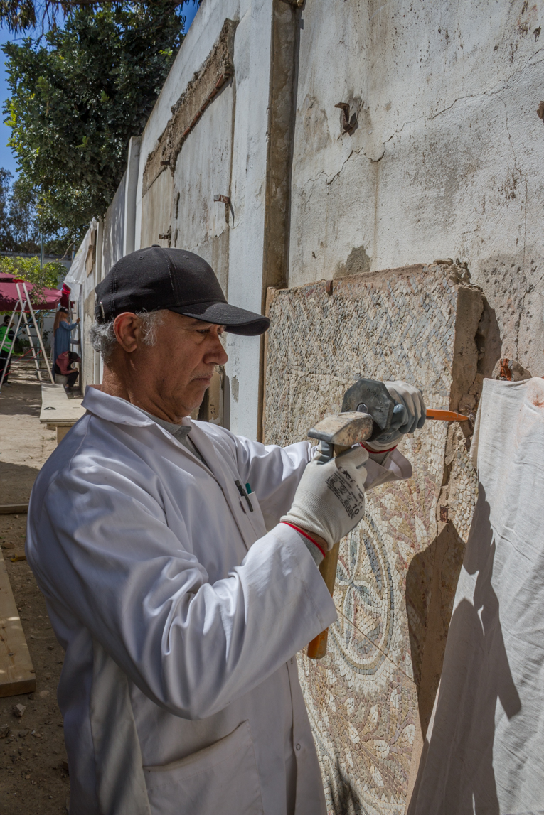 Les mosaïques sont déplacées soit vers les réserves du musée, soit vers leur atelier de restauration.
